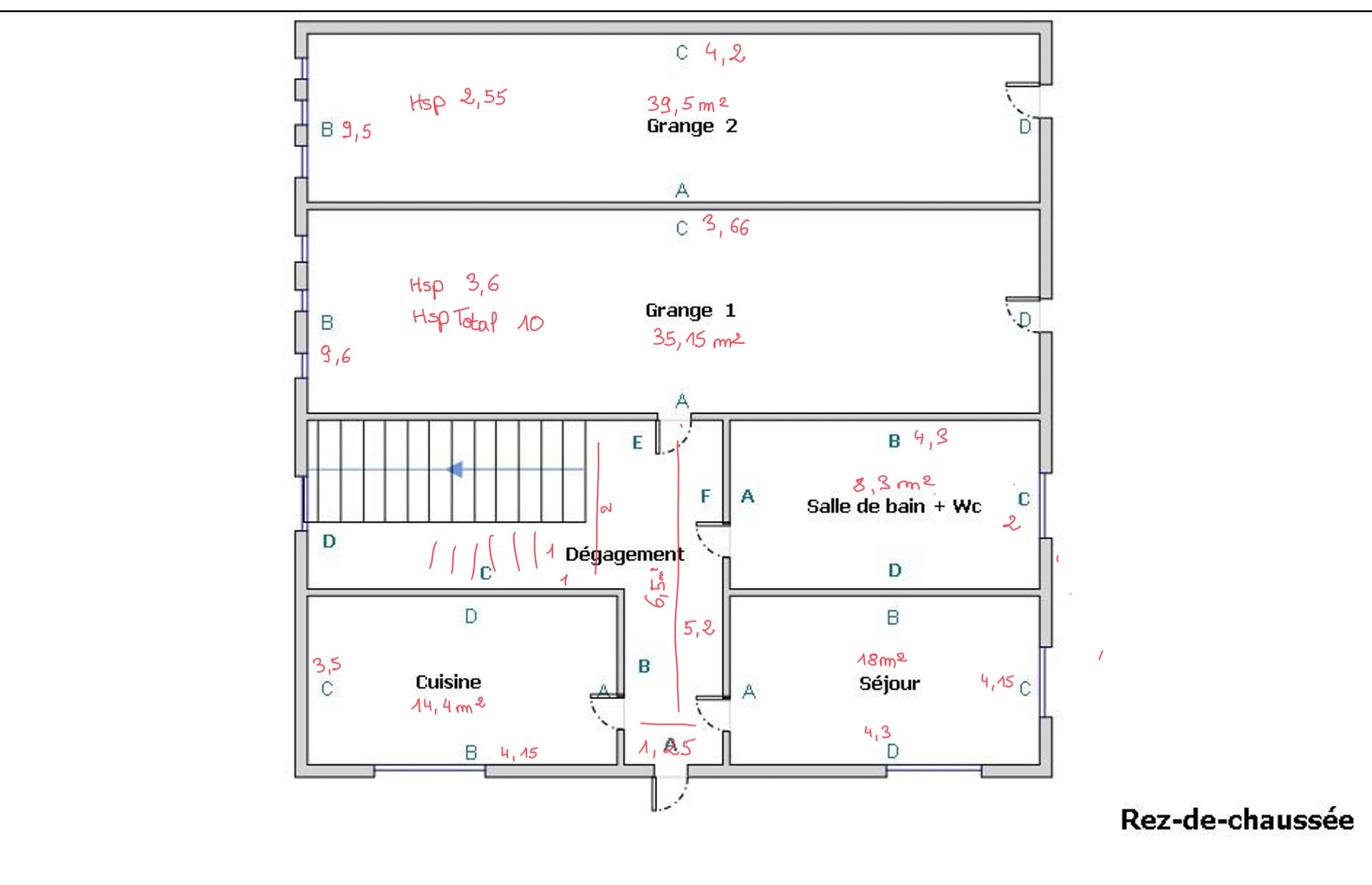 La maison se compose au RDC d'une cuisine, salon et salle d'eau. Un accès au granges/garages sur le même niveau qu'il est possible de transformer en loft attypique OU garages.
