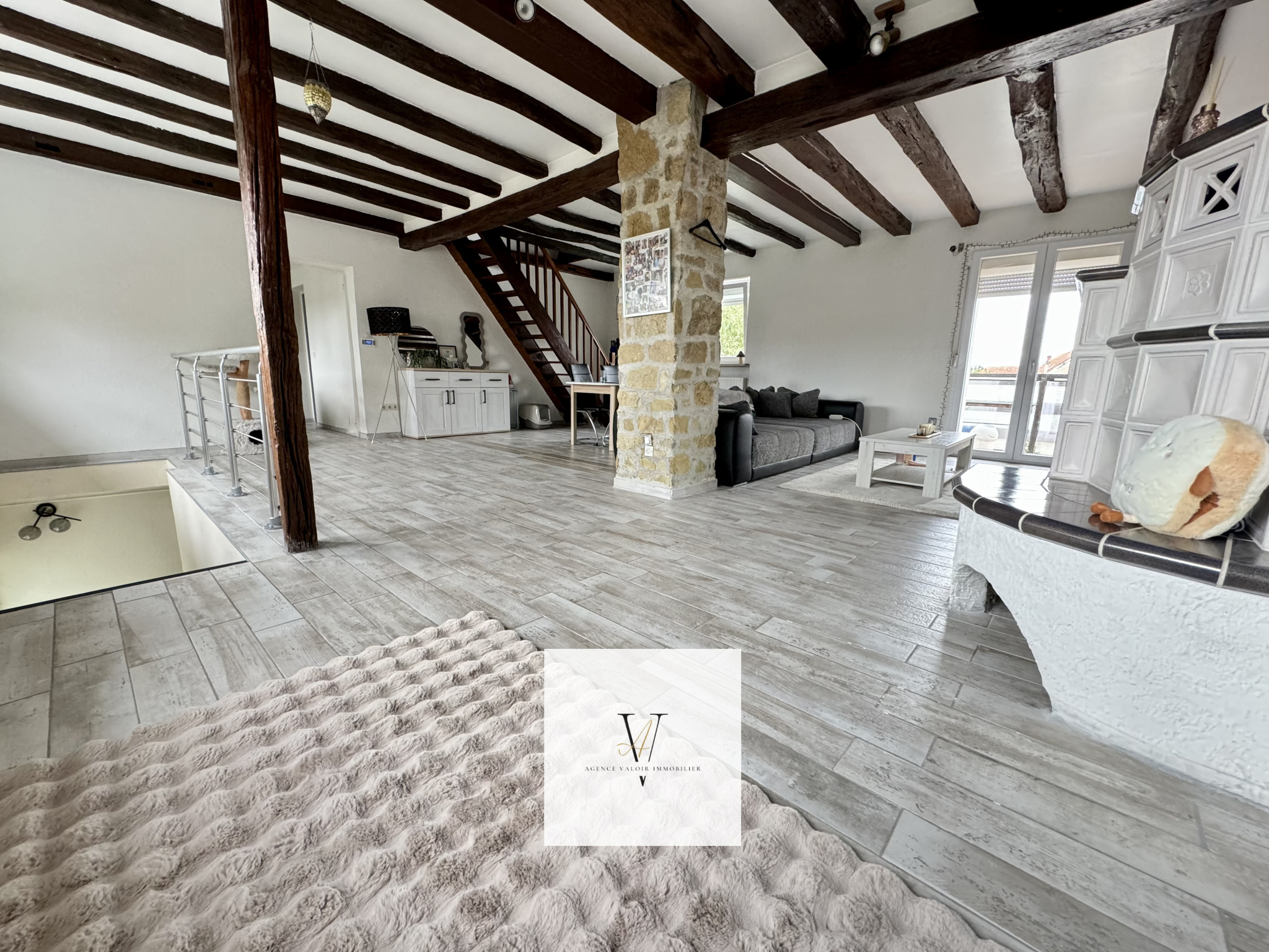 A l'étage, un duplex composé d'un grand séjour, balcon, cuisine, cellier, trois chambres, et un espace aménageable pour suite parentale, chambres ou autres.
