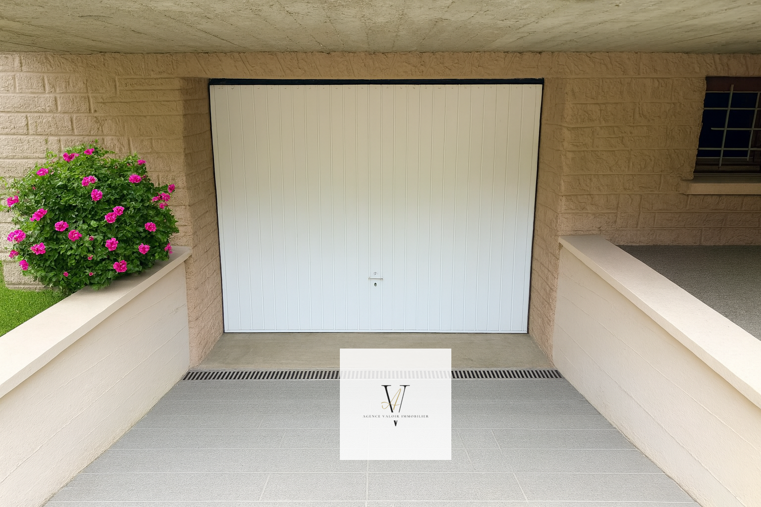 Accès à la cave complète, et garage, au terrain avec arbres fruitiers..