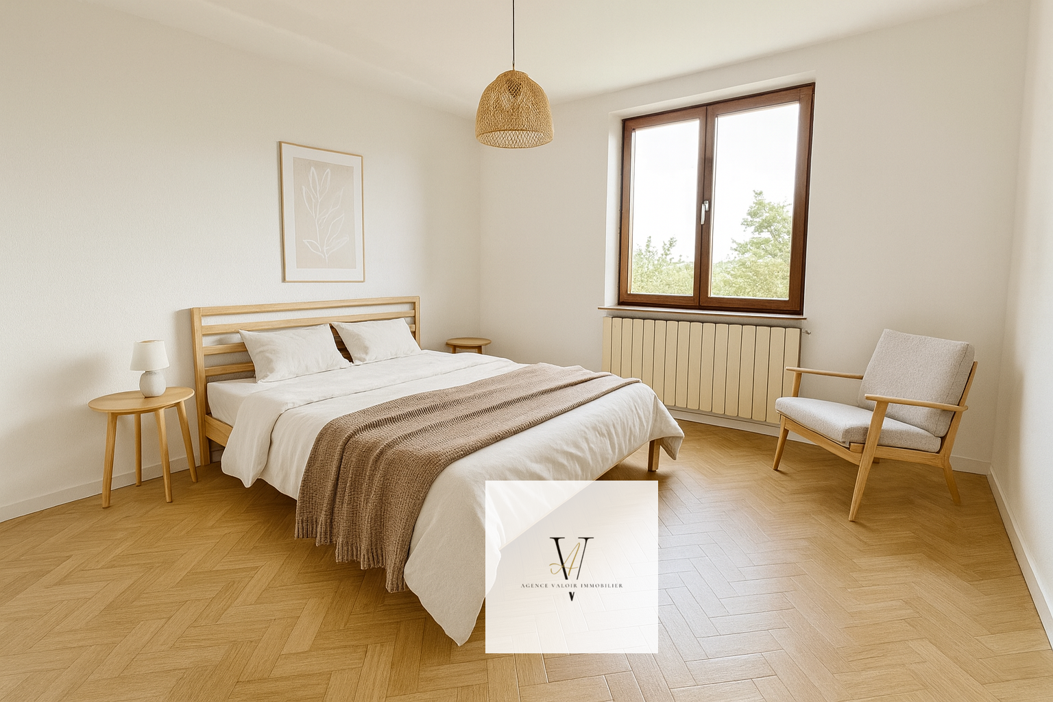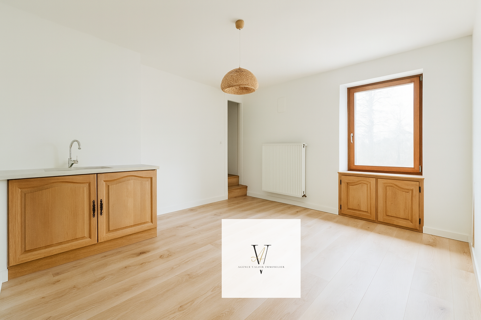 Travaux de rafraîchissement à prévoir : elec, fenêtres, murs/sols/plafonds, cuisine et salle de bain : les avant/après sont des suggestions générées par un logiciel IA.