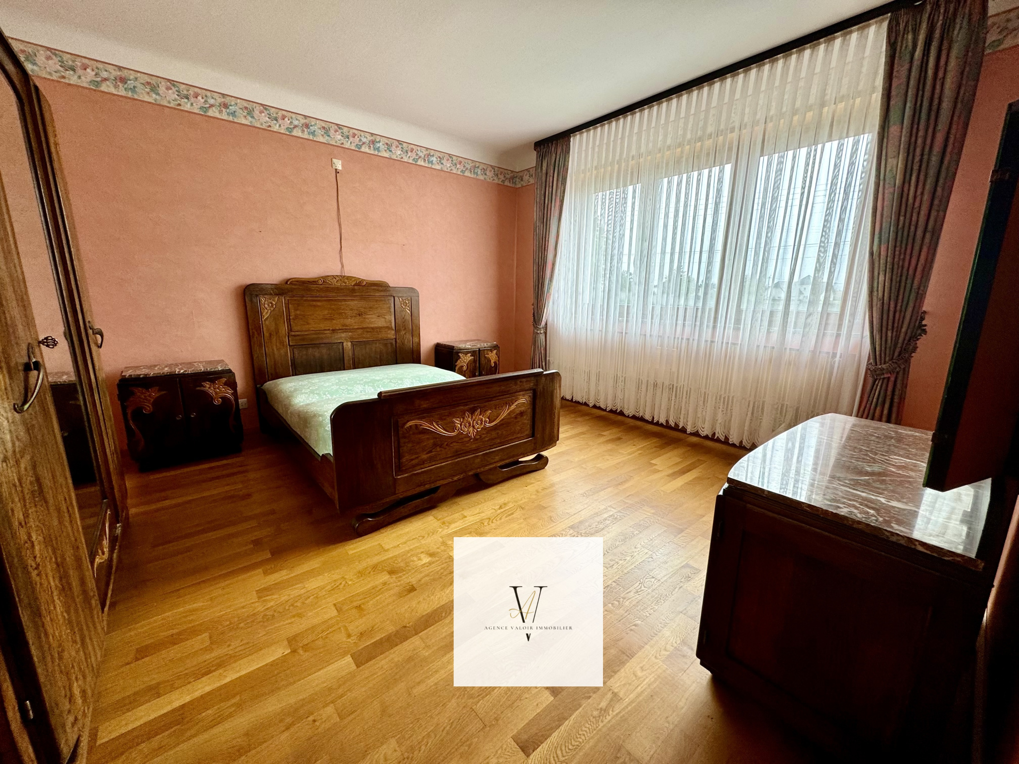 Une grande entrée qui donne sur 3 chambres sur la droite, une salle d'eau, WC séparés, très grand séjour, salle à manger et cuisine