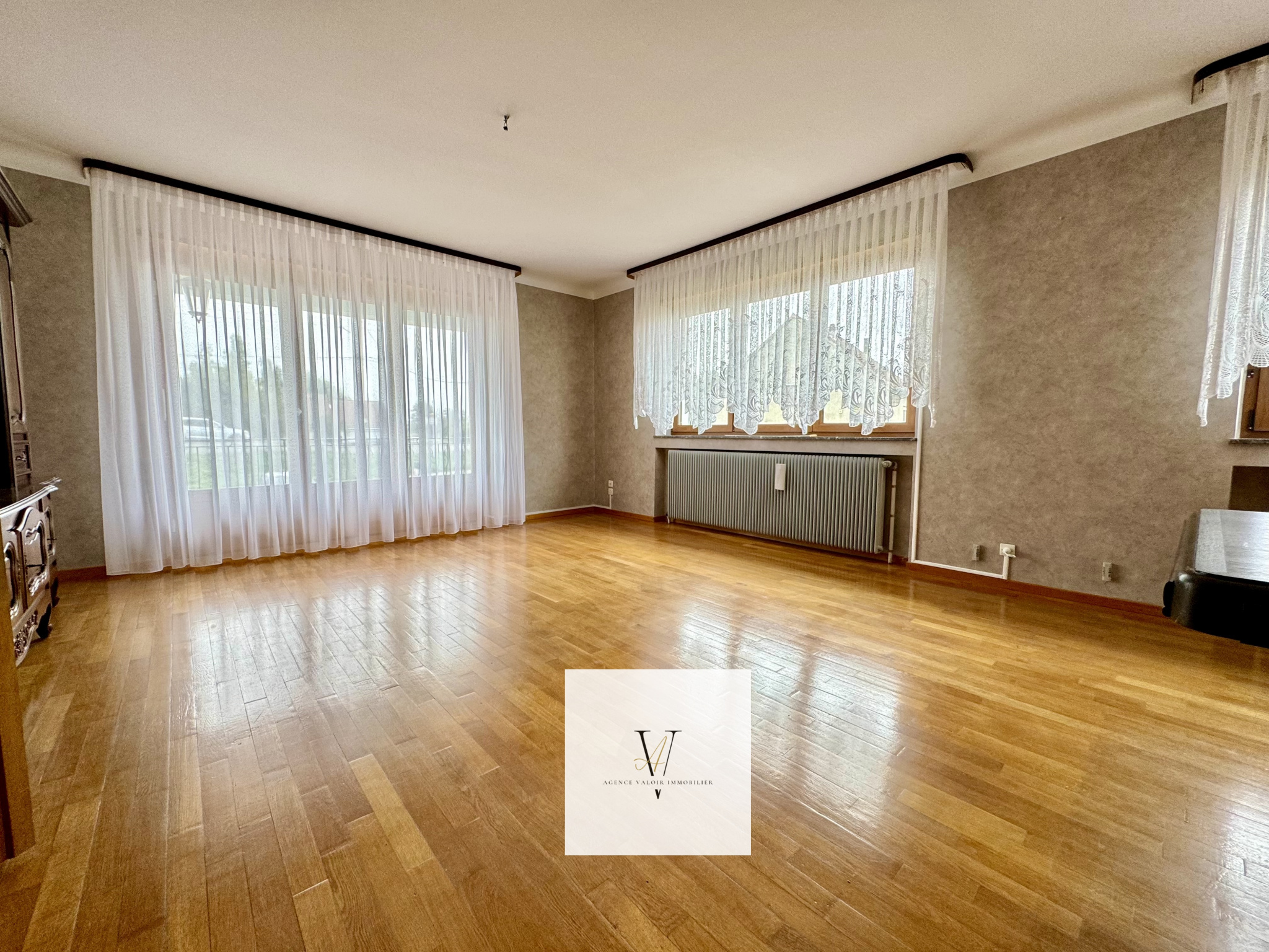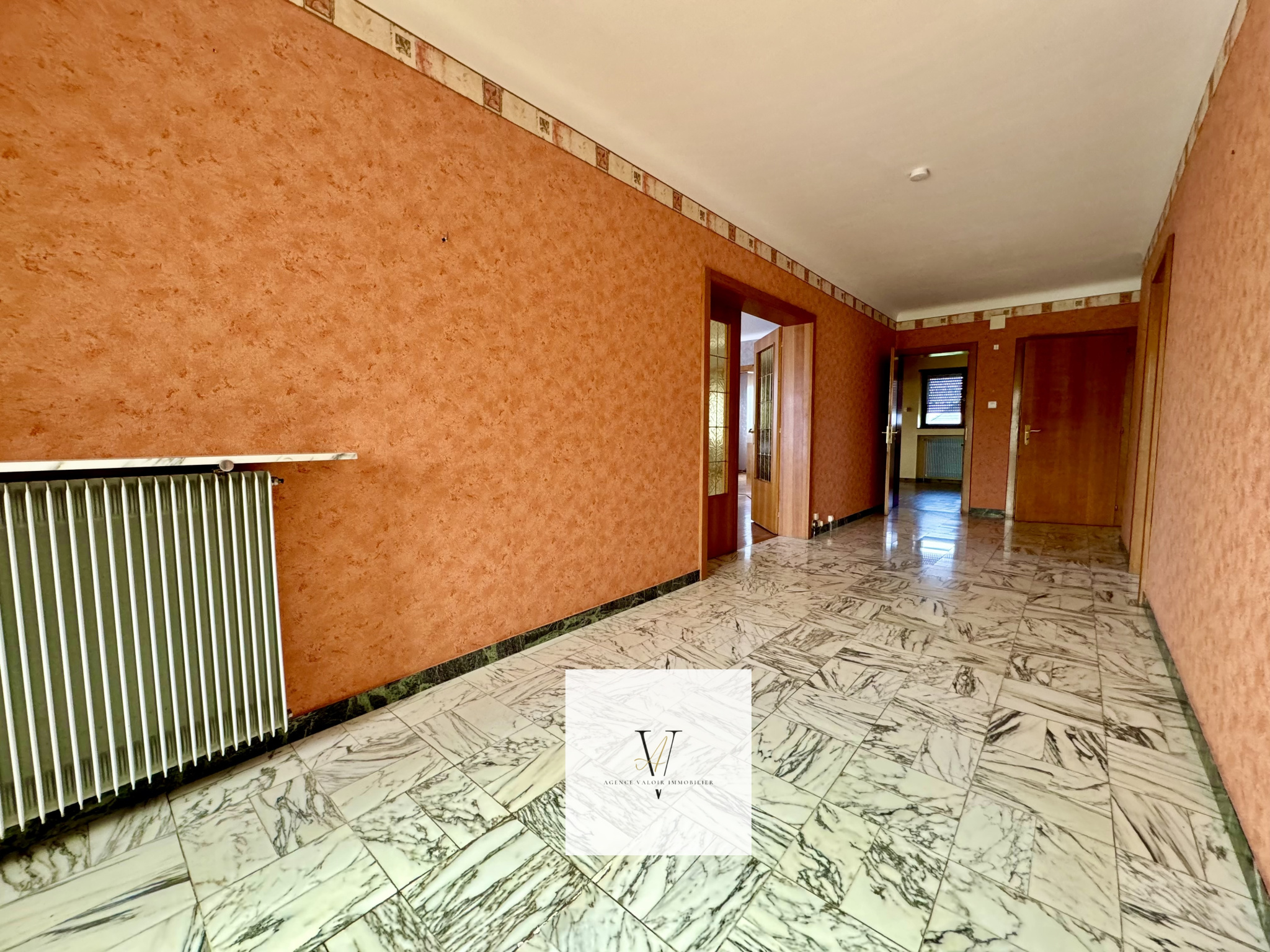 Une grande entrée qui donne sur 3 chambres sur la droite, une salle d'eau, WC séparés, très grand séjour, salle à manger et cuisine